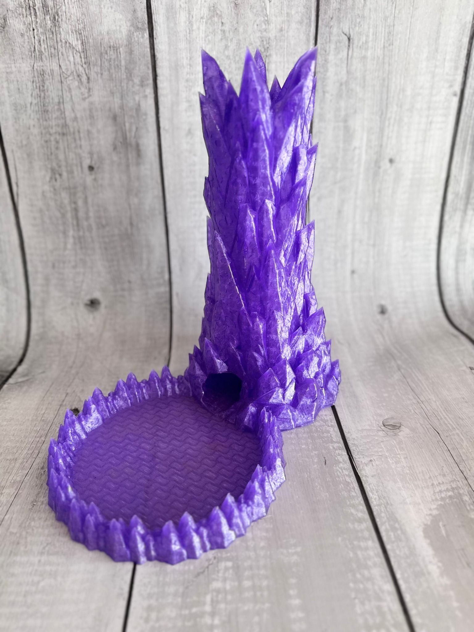 Durable 3d printed dice tower in silk pla. Stylish and practical for game nights and table top role playing games. Free shipping available.